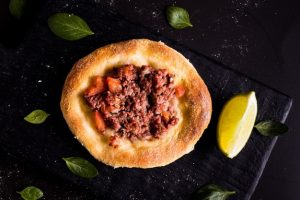 A esfirra de carne moída pode ser combinada com um limão, inclusive é praticamente obrigatório. Além disso, a utilização de molhos é uma boa e três bons exemplos disso são: ketchup, mostarda e maionese.